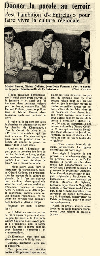 Peu de temps après paraît L’Entrelus, revue d’études régionales dont la vocation pluridisciplinaire est très affirmée.
